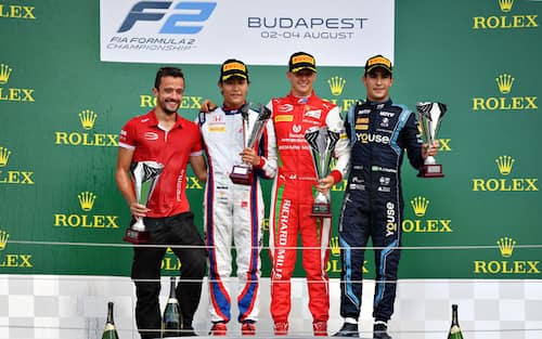Mick Schumacher vince il GP d'Ungheria in Formula 2: la festa sul podio. FOTO