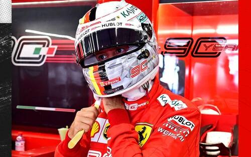 La concentrazione di Sebastian Vettel: il tedesco ha fatto registrare il miglior tempo nella prima sessione di prove libere a Spa. Per l'occasione ha messo in mostra il suo nuovo casco