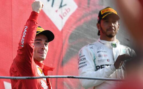 Se Vettel commette un errore al 6° giro compromettendo il suo Gran Premio, Leclerc decide di montare le gomme bianche (dure) al 20° giro ovvero quello seguente ad Hamilton