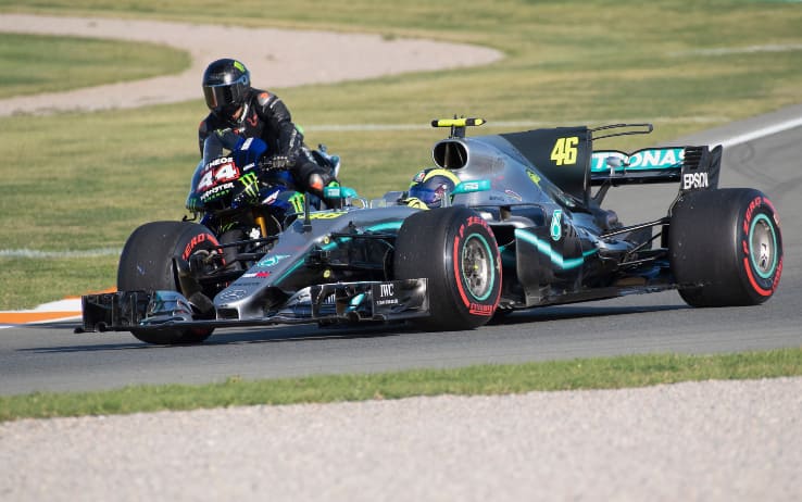 Formula 1Lunedì storico al circuito Ricardo Tormo di Valencia: Rossi e Hamilton si sono trovati per la prima volta a girare insieme sulla stessa pista. Prove con la Mercedes per Valentino: "Mi sono sentito un vero pilota di F1". Il britannico sulla Yamaha del Dottore: "Un sogno diventato realtà"