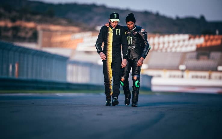 Di certo la curiosità di tutti di sapere qualcosa di più di quanto è andato in scena a Valencia è salita alle stelle. Il Ricardo Tormo è stato praticamente chiuso e monopolizzato per 4 giorni di fila. Perché se è vero che il tanto atteso scambio di mezzi si è consumato "solo" lunedì 9 dicembre, Lewis, perfezionista quale è, ha voluto scaldarsi e prepararsi all’incontro con Valentino girando tutto il giorno anche sabato con una Yamaha R1, insieme ad alcuni amici ma soprattutto guidato e consigliato da Franco Morbidelli.
