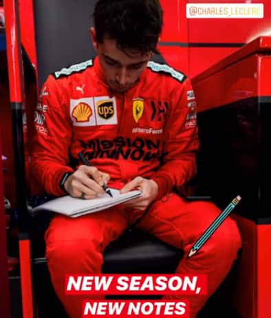 Il primo giorno dei test è un po' come il primo giorno di scuola. Sembra essere proprio così per Charles Leclerc, sceso in pista nel Day-1 di Barcellona al posto del compagno di squadra Sebastian Vettel costretto al forfait per un attacco influenzale. Il mongasco è stato fotografato al box Ferrari mentre prendeva appunti su un quaderno. Immagine postata dalla Scuderia con una storia su Instagram, ma una successiva immagine circolata sempre sui social network ha mostrato qualche dettaglio in più. Si nota innanzitutto una grafia molto precisa, anche se sono poche le parole che si riescono a distinguere in modo chiaro: sessione 1, sessione 2, installation lap. Curioso, ma un altro segnale di come il numero 16 della Ferrari sia sempre molto attento a tutti i particolari.