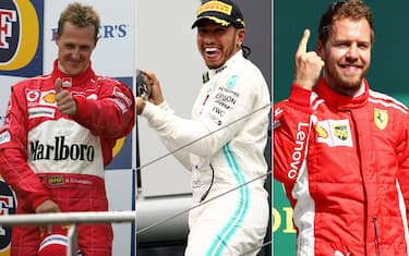 MICHAEL SCHUMACHER, 91 VITTORIE. Il record di successi nel Mondiale è ancora del tedesco, sette volte iridato, di cui cinque con la Ferrari. Proprio con la Rossa, Schumi ha fatto la storia con 72 vittorie tra il 1996 e il 2006. I primi 19 successi in carriera di Schumacher sono invece arrivati a bordo della Benetton.