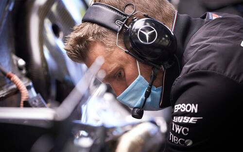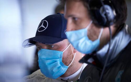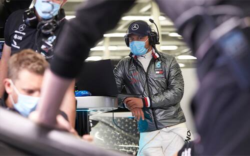 I test si sono svolti, come da regolamento, con la W09, monoposto di due anni fa. E' stata una giornata utile per riassaggiare i box, ma soprattutto per prendere confidenza con i nuovi protocolli di sicurezza anti-Covid