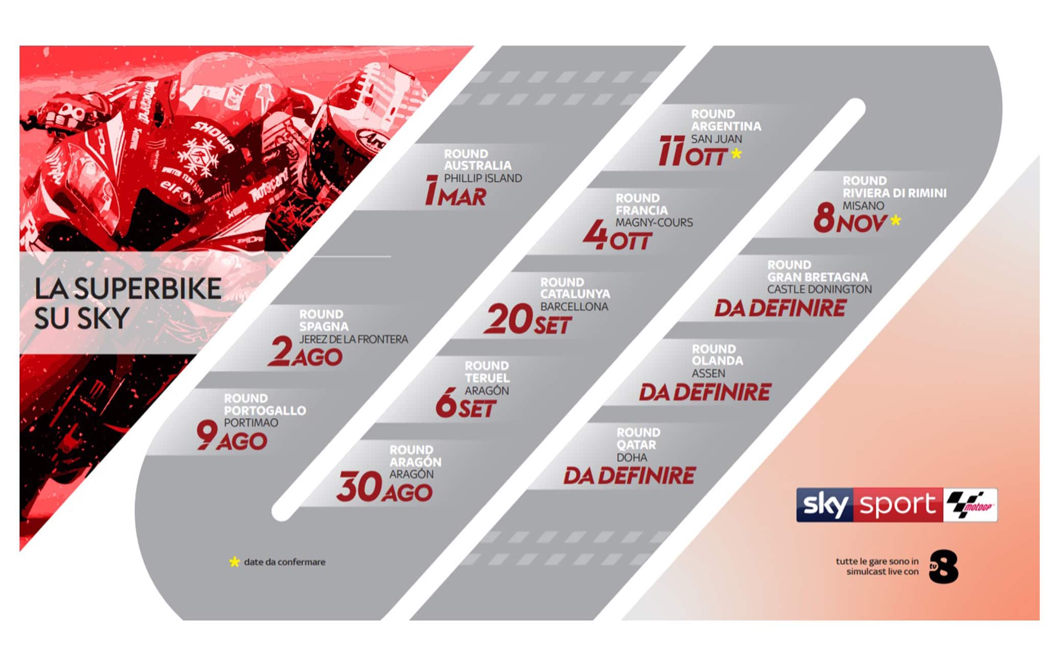 - Superbike: fino a 12 Round in diretta su Sky Sport MotoGP (Tutti i Round del World Superbike in diretta anche su TV8)