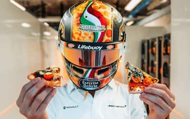 Il pilota della McLaren con un casco molto speciale per Monza: fette di pizza per il suo ironico omaggio al GP d'Italia. Il weekend è in diretta su Sky Sport F1 (canale 207) e Sky Sport Uno (canale 201)