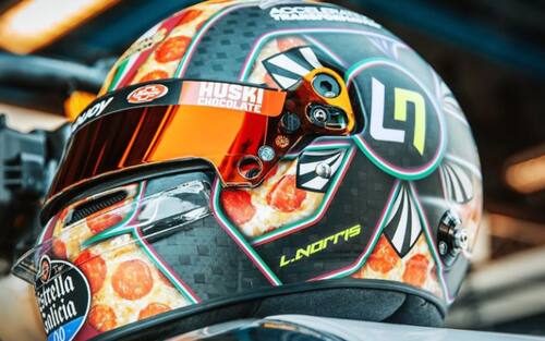 Formula 1: la pizza sul casco di Norris per il GP d'Italia a Monza. FOTO