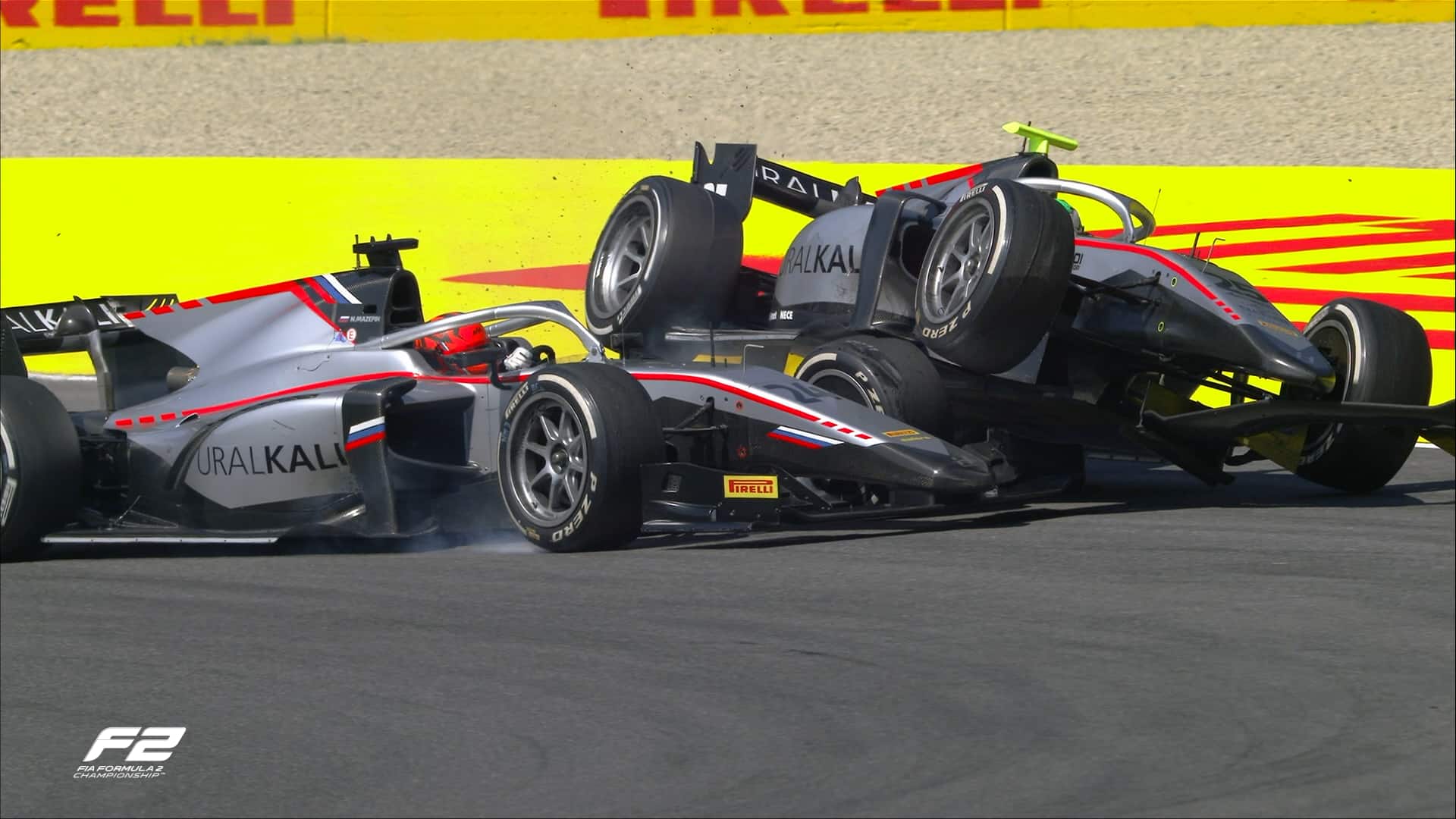 Formula 2, incidente Ghiotto-Mazepin al GP del Mugello: uno sopra l'altro. FOTO e VIDEO