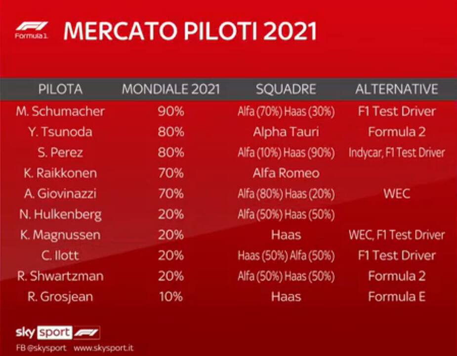 Mick Schumacher, Kimi Raikkonen, Antonio Giovinazzi e tanti altri. Ecco quali sono le voci e le possibilità per il mercato piloti in vista del prossimo Mondiale di F1. Si corre in Russia in questo fine settimana: gara alle 13.10 di domenica in diretta su Sky Sport F1 (canale 207) e Sky Sport Uno (canale 201)