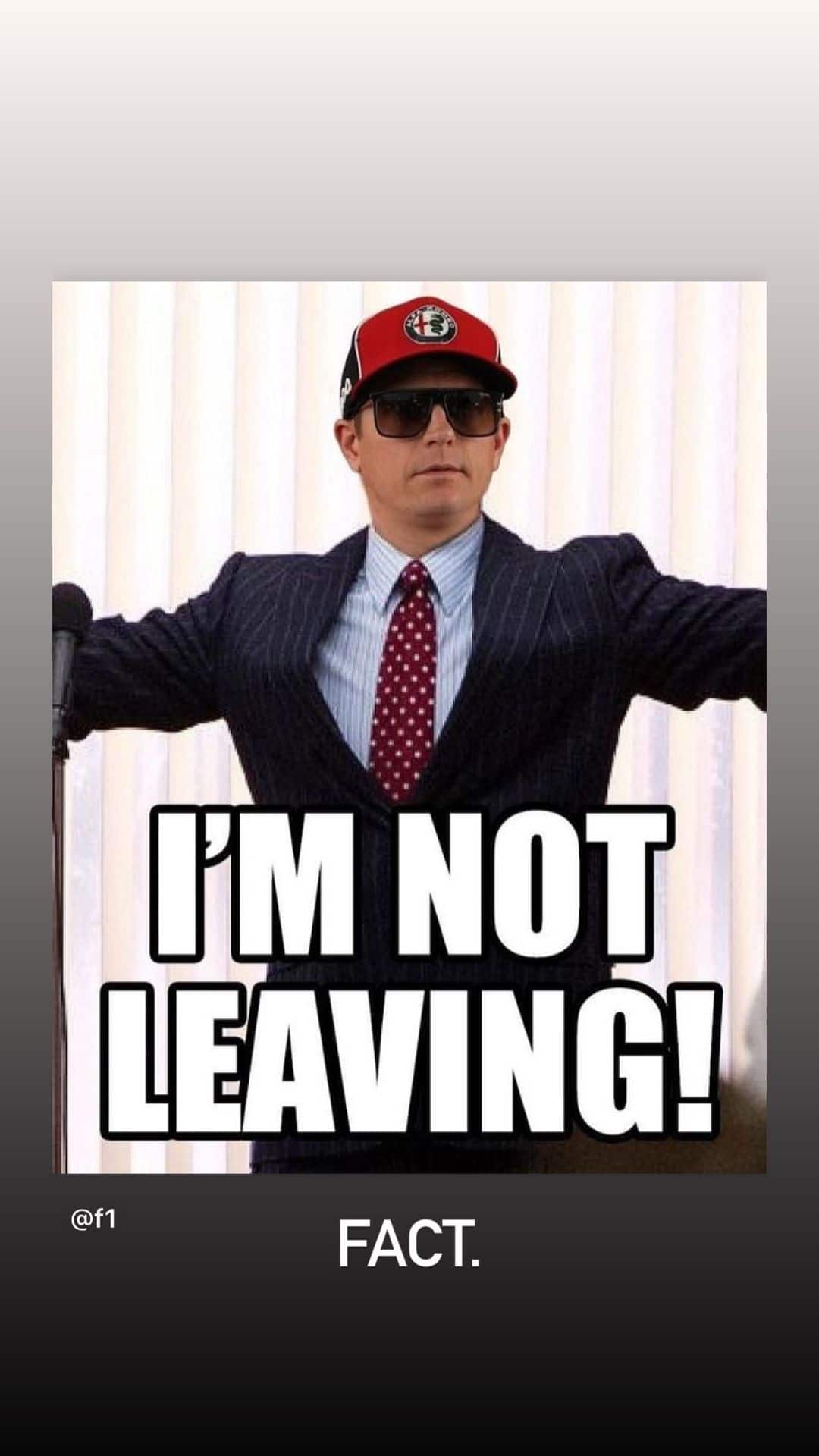 L'account Instagram della Formula 1, dopo i rinnovi dei piloti Alfa Romeo, posta una foto di Raikkonen con un messaggio: "Non me ne vado". La sua risposta è telegrafica ma da ridere in una storia sullo stesso social: "Fatto". La Formula 1 è a Imola, il GP dell'Emilia Romagna live su Sky Sport F1 e Sky Sport