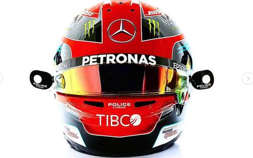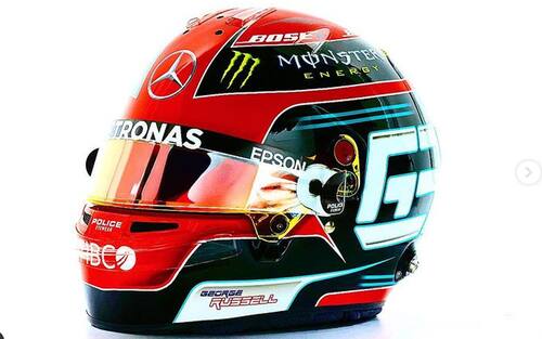 Formula 1, il casco di George Russell per il suo debutto in Mercedes a Sakhir. FOTO