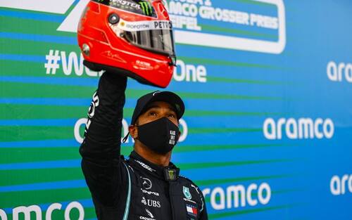 GP EIFEL - Lewis Hamilton ha conquistato il GP dell'Eifel, eguagliando il record di vittorie (91) di Michael Schumacher. Sul podio anche Verstappen e Ricciardo, ritirato Bottas, che dice praticamente addio ai sogni iridati. Settimo Leclerc, Vettel chiude 11°. A punti l'Alfa di Giovinazzi.