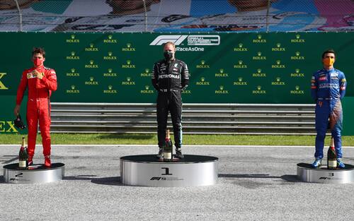 GP AUSTRIA - Bottas vince la prima gara del Mondiale 2020 al Red Bull Ring. Hamilton, penalizzato 5'' dopo un contatto con Albon, lascia a un super Leclerc la seconda posizione. Britanico che chiude 4°, dietro anche a Norris. Vettel si gira per evitare Sainz, il tedesco è 10°. Verstappen si ritira per problemi tecnici. Solo 11 vetture al traguardo. Prima del via molti piloti in ginocchio in segno di protesta contro il razzismo.