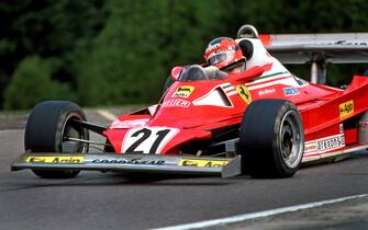 FERRARI 312 T2 - Gilles Villeneuve durante le prove libere del GP del Canada il 9, ottobre 1977. NUMERI. 31 GP, 8 vittorie, 5 pole, 26 podi, 13 volte in prima fila.