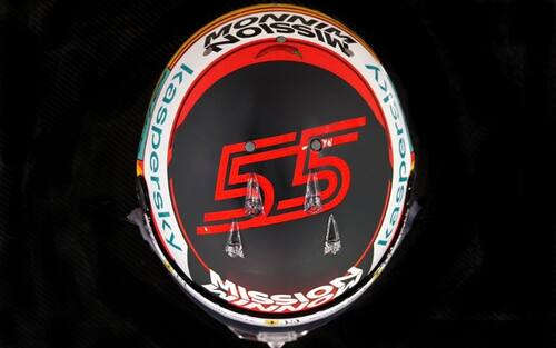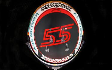 Il nuovo pilota della Ferrari in pista con il suo numero "55" che ovviamete campeggia anche sul casco con il quale affronterà il suo primo Mondiale alla guida della Rossa. Qui tutti i dettagli