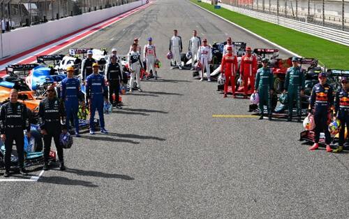 La foto di gruppo che ha aperto la tre giorni di Sakhir
