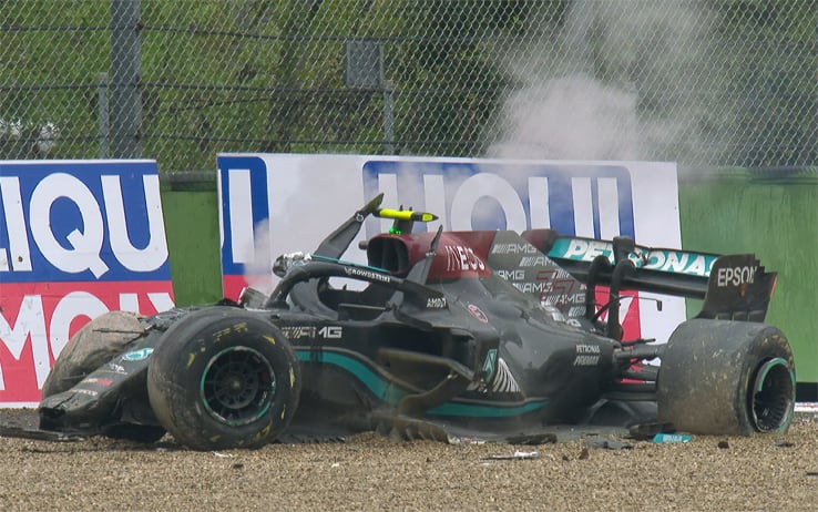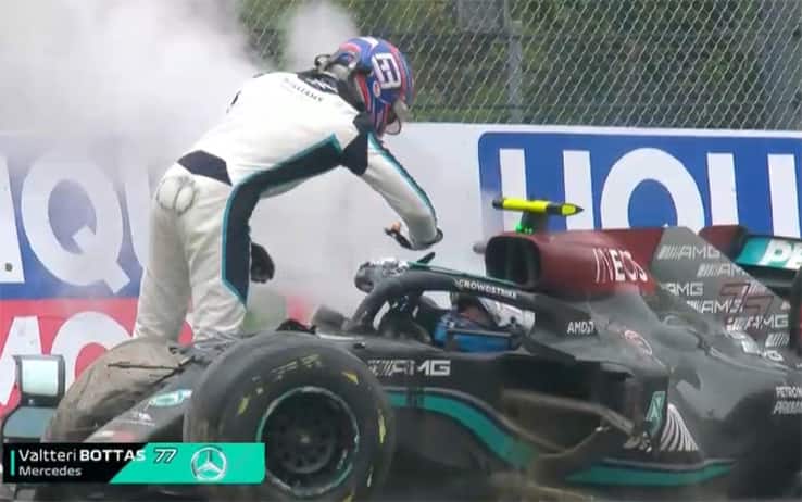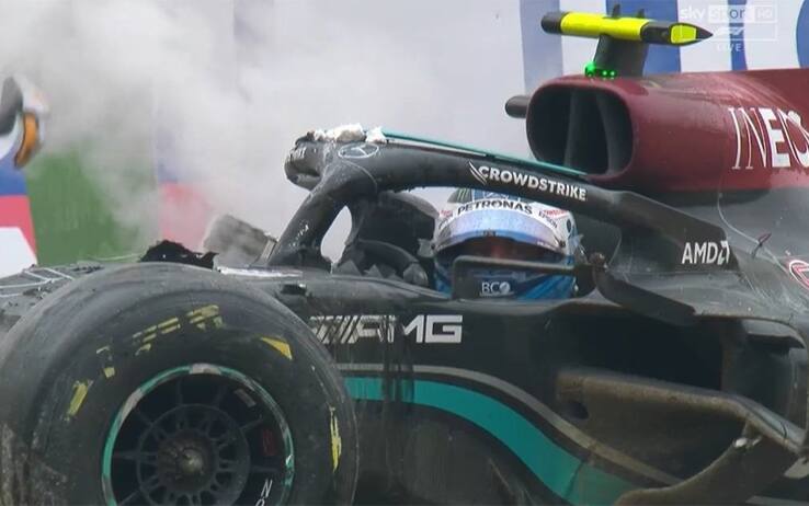 Clamoroso incidente al giro 34 del GP del Made in Italy e dell'Emilia Romagna: Russell tenta il sorpasso su Bottas a oltre 300 km/h, perde il controllo della sua Williams e centra la Mercedes del finlandese. Piloti miracolosamente illesi, con il britannico che preso dall'adrenalina si è arrabbiato molto con il rivale, colpendolo anche sul casco. "Non so perchè si è comportato così", ha detto Bottas. La replica di Russell: "Mi ha quasi portato via una vittoria"