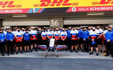 I piloti e tutto il team americano con il lutto al braccio a Portimao in ricordo del loro collega scomparso a soli 24 anni a seguito di un incidente in moto
