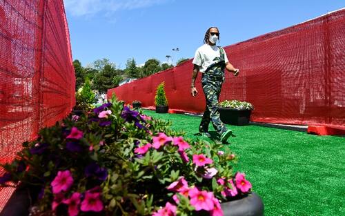 Una salopette con motivo mimetico militare per Lewis Hamilton. Così il campione del mondo della Mercedes, pronto alla nuova "battaglia" in pista con Verstappen, è arrivato al circuito di Barcellona dove scatta il quarto weekend del Mondiale. Il GP è in diretta su Sky Sport F1 (canale 207) e Sky Sport Uno (canale 201)
