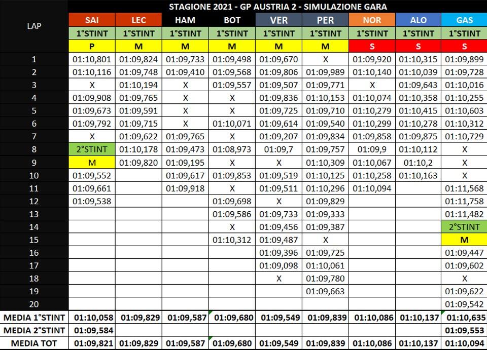 Sul ritmo di gara la Red Bull si è dimostrata più performante rispetto alla Mercedes. Il gap tra i due team sembra similare a quello di 7 gg fa con la RB16B davanti di circa 1 decimo al giro.