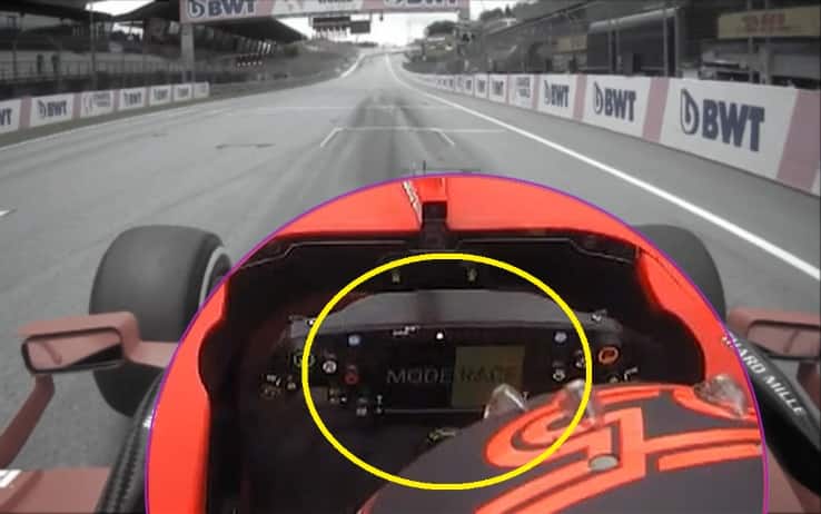 ferrariMatteo Bobbi analizza i messaggi sul volante di Sainz durante una prova di partenza. Dopo aver inserito la prima marcia, il pilota inizia una serie di procedure. Cambia un settaggio con la mano, sul volante appare la scritta "TRQ 2", dove "TRQ" sta per "torque": il pilota entra in una modalità di coppia differente per la partenza. Subito dopo modifica nuovamente il parametro (come si nota dal display), passando in "mode race", ovvero la modalità che imposta il motore per la gara