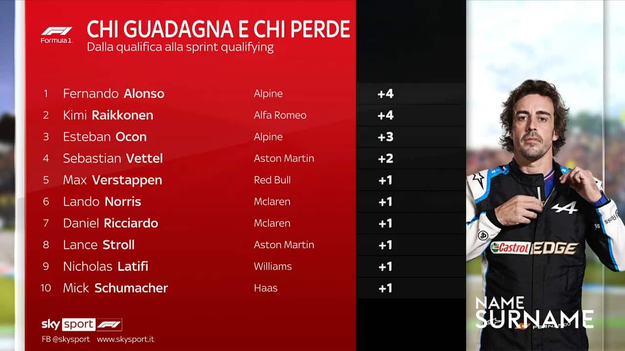 IL BILANCIOFacciamo parlare i numeri dopo la prima e storica qualifica Sprint testata nel sabato di Silverstone: ecco chi ha guadagnato e chi ha perso di più in termini di posizioni. Il GP della Gran Bretagna è in diretta su Sky Sport F1 (canale 207)