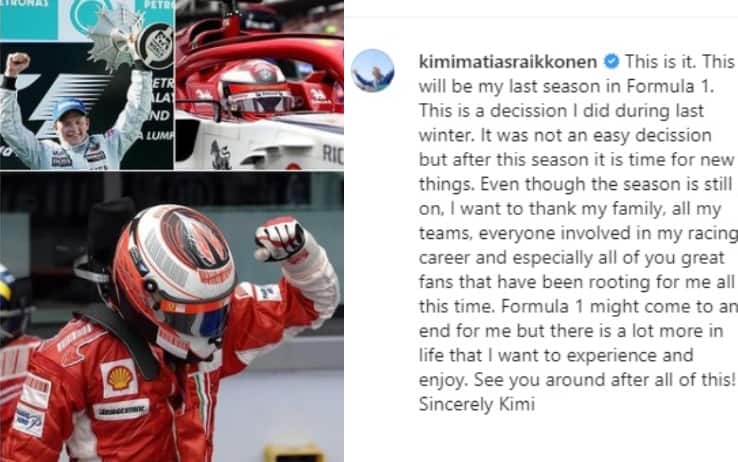 L'ex ferrarista, campione del mondo nel 2007 con la Rossa, ha annunciato via social l'addio alla Formula 1 al termine della stagione in corso. "Ho deciso questo inverno: non è stato facile ma è tempo di nuove cose. Voglio ringraziare la mia famiglia, i team in cui ho corso e soprattutto i tifosi che mi hanno sostenuto in questi anni"