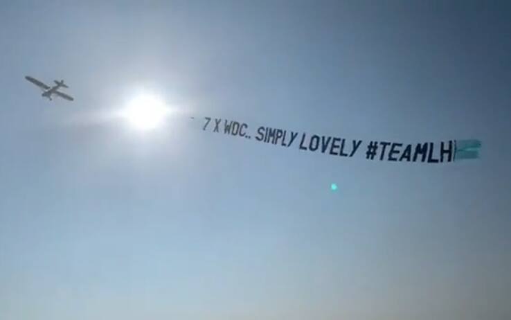 F1, in volo per Hamilton: l'aereo del TeamLH su Zandvoort con un messaggio. VIDEO
