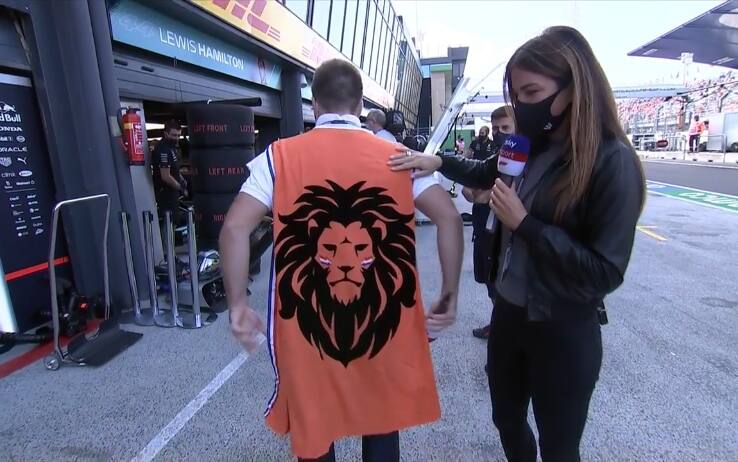 F1, GP Olanda: spunta il mantello di "Super Max" Verstappen. VIDEO