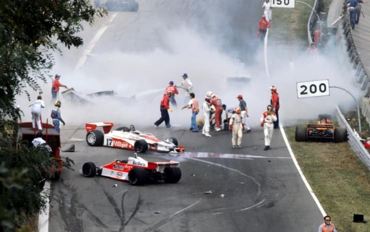 Il 10 settembre 1978 Jody Scheckter va a sbattere contro il guard-rail alla Lesmo 2 nel giro di formazione. La gara era già stata fermata dopo il terribile incidente al via che costerà la vita a Ronnie Peterson. Partenza ritardata alle 18.15 e gara ridotta a 40 giri, vinse Niki Lauda nel giorno della sfida tra Andretti (che si laureò campione del mondo) e Villeneuve, entrambi penalizzati.