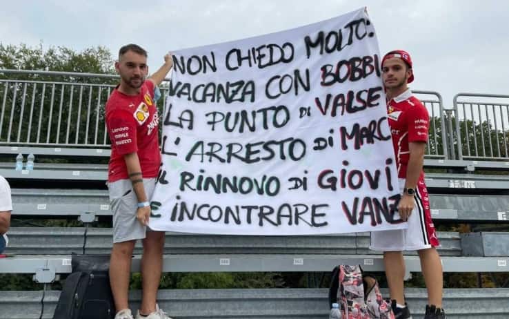 F1, striscione tifosi a Monza: "Vacanza con Bobbi, la Punto di Valse, rinnovo Giovi e..."