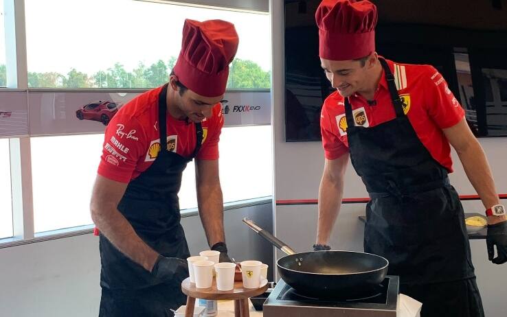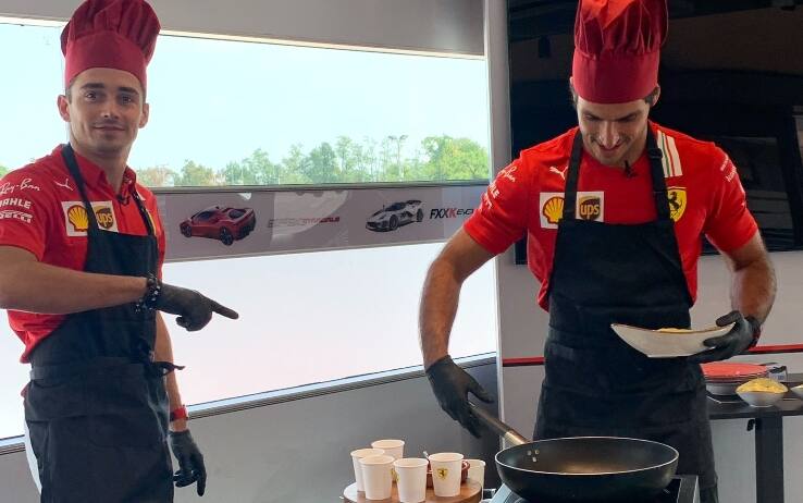 F1 a Monza, Leclerc e Sainz ai fornelli: il GP parte in cucina. FOTO