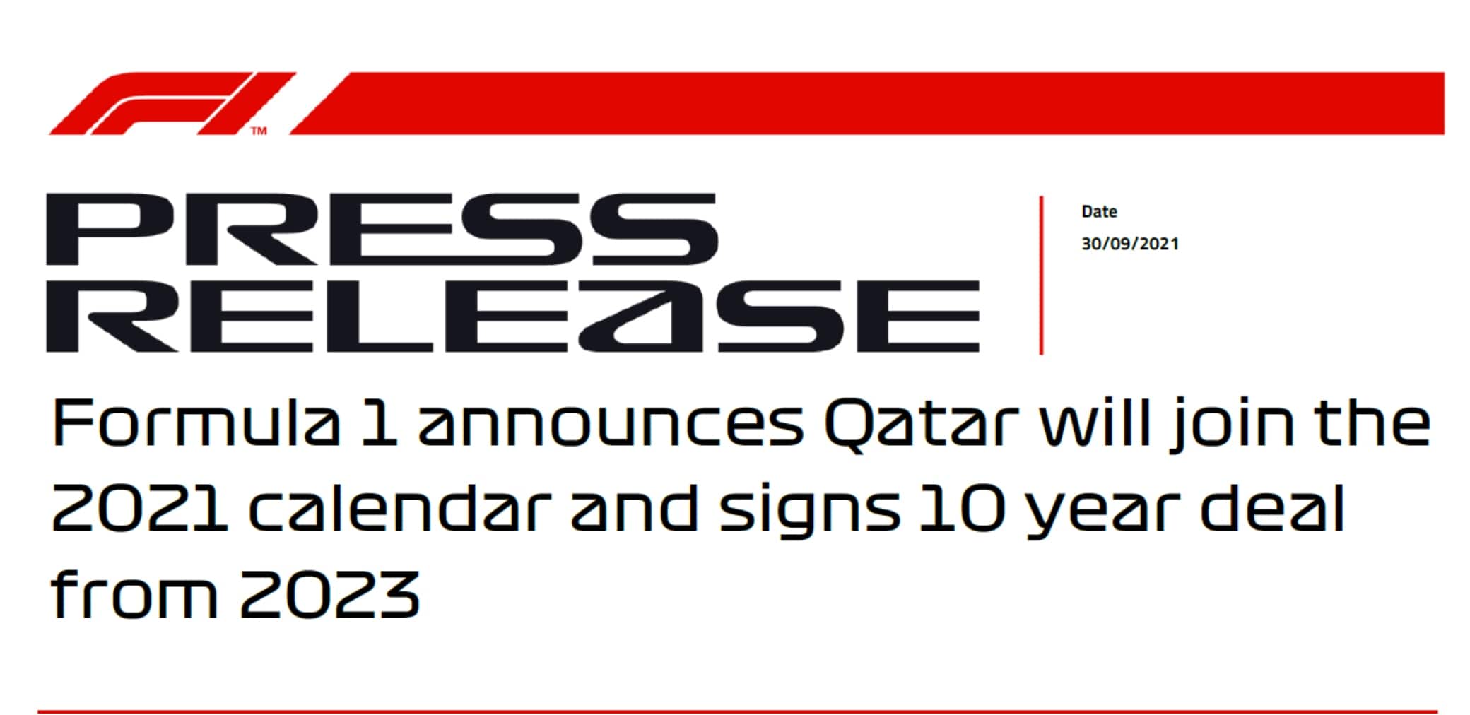 "Siamo molto lieti di accogliere il Qatar nel calendario della Formula 1 in questa stagione e fino al 2023. La Qatar Motor & Motorcycle Federation e le autorità sono state incredibili e si sono mosse con grande velocità per garantire che la gara possa svolgersi in questo campionato al Circuito di Losail, famoso per molti come il circuito in cui fa tappa la MotoGP”.