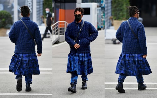 Il pilota britannico sa sempre come sorprendere tutti, in pista e fuori. Lo dimostra anche il look con il quale ha fatto il suo ingresso all'Istanbul Speed Park nel giovedì dedicato alla conferenza stampa. Cappotto corto, pantalone e gonnellino dove dominano il blu e il nero. Ai piedi immancabili gli anfibi (in tinta), tanta attenzione agli accessori. E i capelli... Tutto il weekend del GP di Turchia è live su Sky Sport F1 (canale 207)