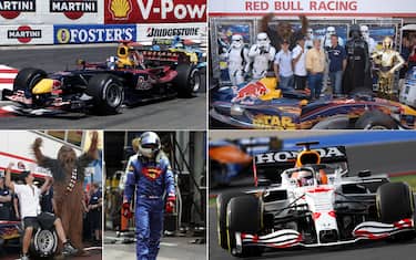 La prima uscita della Red Bull con una livrea celebrativa arriva nel 2005 nel GP più glamour, quello di Montecarlo. Le macchine di Liuzzi e Coulthard omaggiano l'uscita dell'ultima puntata della saga 'Star Wars'
