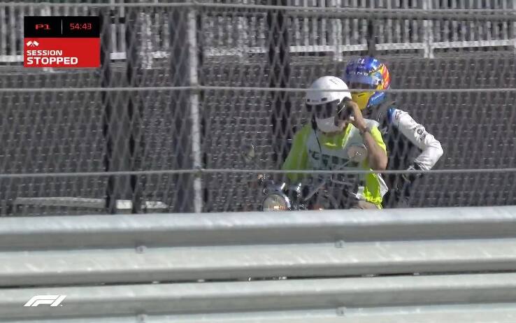 ALPINEBrutto inizio di weekend per il pilota spagnolo, che si ferma pochi istanti dopo il via della prima sessione di libere ad Austin: problema idraulico alla sua Alpine. E torna ai box in motorino. Il GP degli Usa è live su Sky Sport F1 (canale 207)