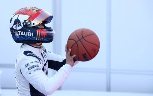 Stanco dei tiro dalla lunetta, il pilota dell'AlphaTauri va in terzo tempo per concludere. Sempre con il casco. Comodo, no?