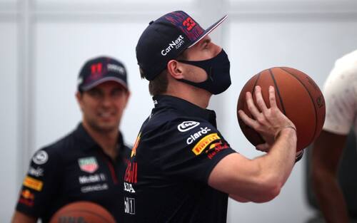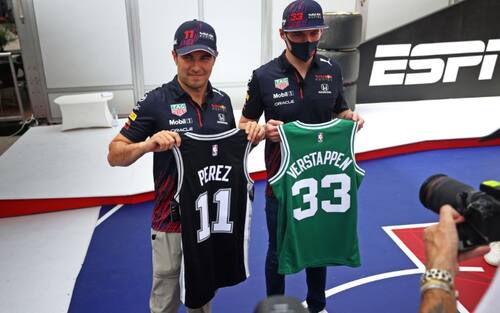 Canotta degli Spurs per Perez e dei Cetics per Verstappen.
