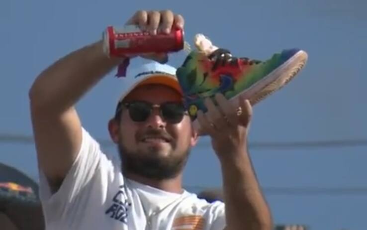 GP USAUna bella bevuta dalla scarpa.... Dagli spalti del circuito di Austin, le immagini di un tifoso che imita la celebre esultanza del pilota australiano. È un vero super fan di Daniel come si può vedere dalla maglietta che indossa... Oggi il GP degli Usa live su Sky Sport F1 (canale 207), Sky Sport Uno (canale 201) e anche in 4K!