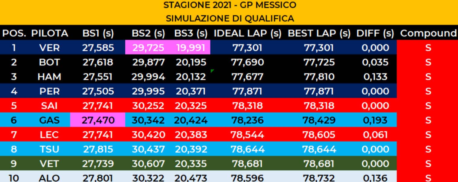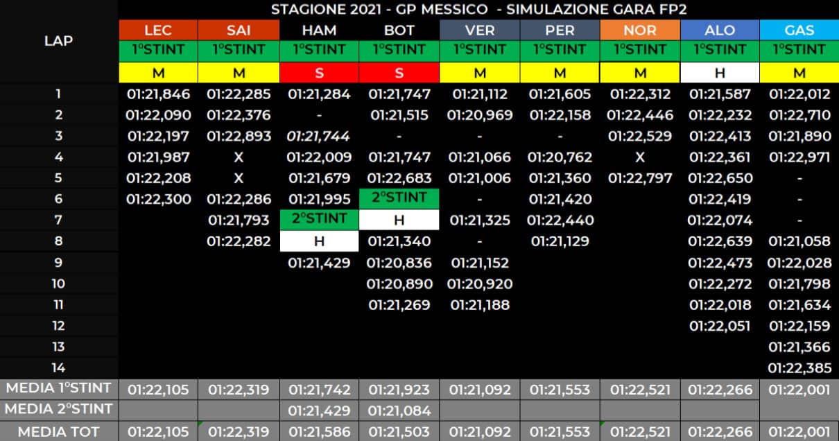 Il tracciato messicano, come previsto alla vigilia, sembra esaltare il pacchetto Red Bull e la sua forza l’abbiamo vista nelle Prove Libere 2 con Verstappen che ha inflitto un gap piuttosto importante nei confronti del duo Mercedes. La RB16B, su una pista molto “green”, ha dimostrato di volare specialmente nel secondo e terzo settore dove è fondamentale il carico aerodinamico. Tutte le vetture in pista hanno accusato una mancanza di grip in questi tratti di pista ad eccezione dei due piloti di Milton Keynes che sembravano guidare sui binari. Tutti i team sono scesi in pista con ali da alto carico aerodinamico similari a quelle utilizzate a Monaco proprio per cercare di trovare la massima downforce. Il Gp del Messico viene corso ad un altitudine di 2.285 m e questo comporta una riduzione di ossigeno di circa il 25% (rispetto al livello del mare 0 m). Questo aspetto causa delle problematiche non solo ai motori ma anche al carico aerodinamico delle vetture che, a parità di ali, è ridotto di circa il 25% rispetto agli altri circuiti ( 0 m s.l.m.).