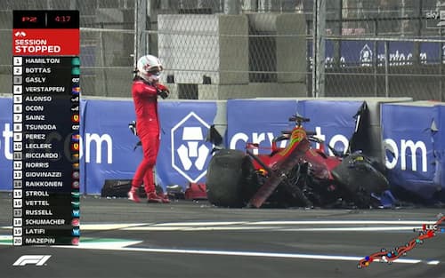 Brutto incidente per Charles Leclerc al termine delle seconde libere: il monegasco perde il controllo della Ferrari alla Curva 22 e sbatte violentemente con il posteriore contro le barriere. Bandiera rossa e sessione terminata in anticipo. Pilota ok dopo essere passato al Centro medico di Jeddah per accertamenti. Nessun danno alla monoposto: telaio e Power Unit hanno retto all'impatto