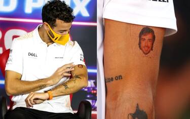 Simpatico siparietto nel corso della conferenza stampa dei piloti ad Abu Dhabi, dove l'australiano della McLaren ha mostrato il suo nuovo tattoo con la faccia di Alonso. Anzi: è stato lo stesso Fernando a "procurare" il tatuaggio (temporaneo) a Ricciardo, per cui lo spagnolo è stato sempre un idolo. "È davvero bellissimo", il commento di Daniel