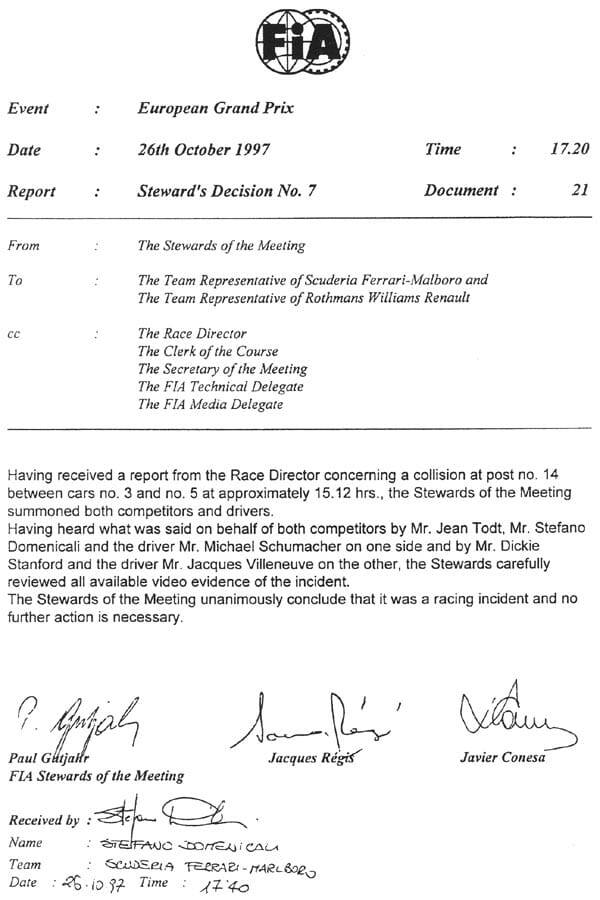 Il precedente Schumacher-Villeneuve del 1997