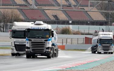 NON E' LA CRSA DEI CAMION! - Pomeriggio dell'ultima giornata di test a Barcellona per provare anche le gomme per la pioggia. I camion hanno bagnato la pista, i team di F1 montato full wet e intermedie Pirelli nelle ultime 4 ore a disposizione al Montmeló.