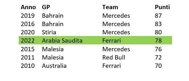 Inizio di stagione opposto per Ferrari e Mercedes. Partenza record per la Rossa, con 78 punti in due gare: non è solo il miglior bottino per la casa di Maranello, ma è anche il quarto di tutti i tempi in assoluto al secondo round. Per la scuderia tedesca invece solo un podio dopo due GP, quello di Hamilton in Bahrain: non succedeva dal 2013, quando dopo Australia e Malesia era arrivato soltanto il 3° posto di Hamilton in Malesia