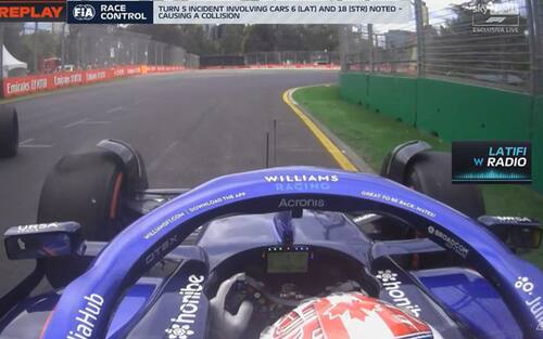 Un'incomprensione è alla base del clamoroso incidente accaduto al termine del Q1 delle qualifiche del GP d'Australia. Latifi fa passare Stroll, poi decide di sorpassarlo nuovamente sulla destra. Il canadese dell'Aston Martin non capisce le intenzioni del collega e si sposta proprio in quella direzione, toccando la Williams che va a muro. Piloti ok, ma sotto investigazione per verificare le responsabilità: i commissari hanno deciso di penalizzare Stroll (che sarebbe comunque partito ultimo) di 3 posizioni