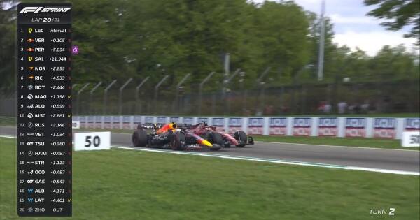 GP IMOLAUn altro capito del duello Verstappen-Leclerc si è consumato al 20esimo giro dei 21 previsti nella Sprint di Imola: in curva 2, l'olandese della Red Bull riesce a passare la Ferrari del monegasco. Si decide tutto lì. Domenica alle 15 il GP in diretta su Sky Sport F1 (canale 207), Sky Sport Uno (canale 201), in streaming su NOW, in chiaro su TV8 e in tempo reale su skysport.it