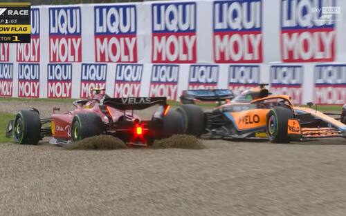 GP Imola, Sainz finisce nella ghiaia dopo un contatto con Ricciardo. FOTO