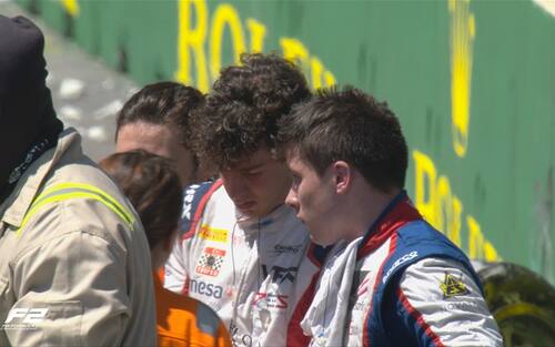 Nel corso del 14° giro era toccato ad Hauger, finito a muro dopo il tentativo di sorpasso su Pourchaire.