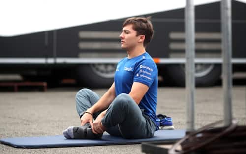 Enzo Fittipadi, pilota di Formula 2, ne approfitta per fare un po' di yoga